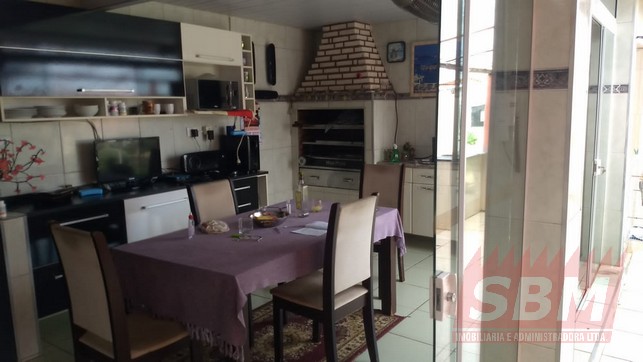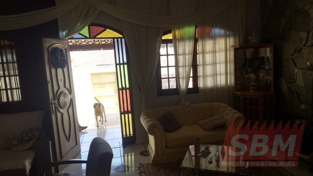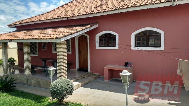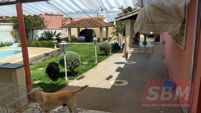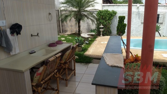 Casa com 05 quartos, sendo 02 suítes, 02 salas, copa, cozinha azulejada, 03 banheiros azulejados, área de serviços coberta e garagem coberta e descoberta + edícula com suite, cozinha azulejada, churrasqueira e piscina.