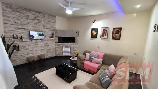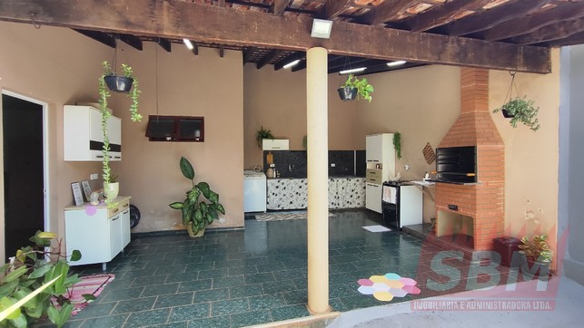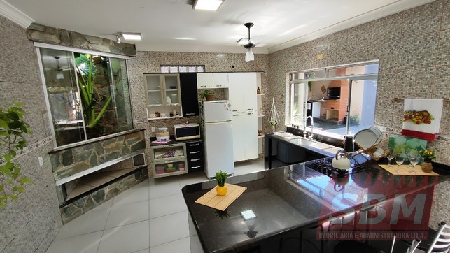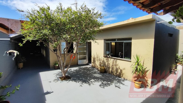 Casa com 03 quartos, sala, cozinha azulejada, banheiro azulejado e garagem coberta com portão eletronico + edícula com área de lazer com churrasqueira, quarto, banheiro e quintal.