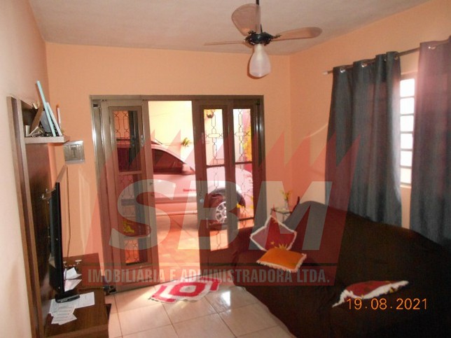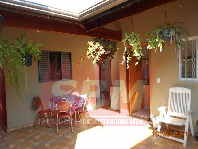 Casa com 02 quartos, sala, cozinha, banheiro, área de serviços e garagem coberta + edícula com quarto, banheiro e churrasqueira.