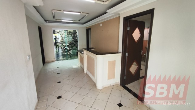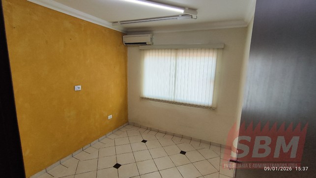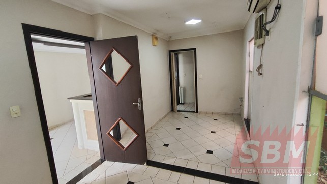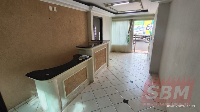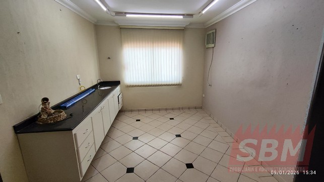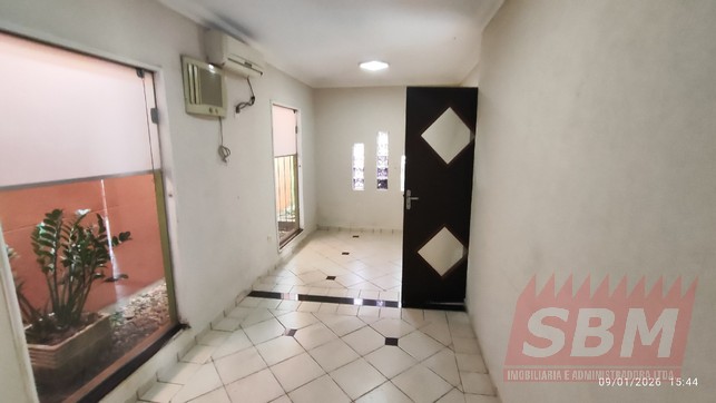 Ponto comercial com recepção, 03 salas, banheiro azulejado, lavabo, copa, lavanderia e estacionamento.