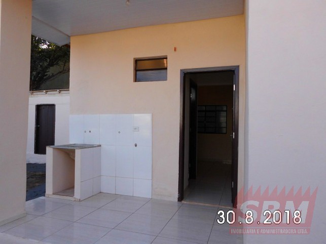 Casa com 02 quartos, 02 salas, cozinha com azulejo na pia, despensa, banheiro, área de serviços e garagem descoberta.