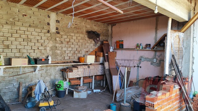 Casa com 02 quartos, sendo 01 suíte com banheiro azulejado, sala, 02 cozinhas azulejadas, banheiro social azulejado e garagem coberta + edicula inacabada.