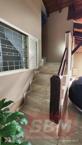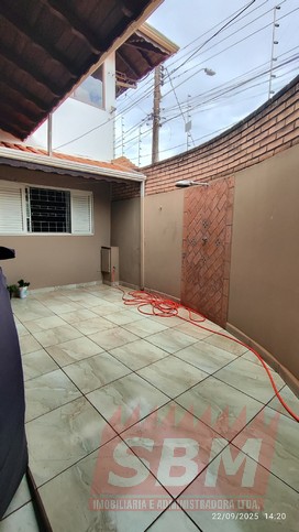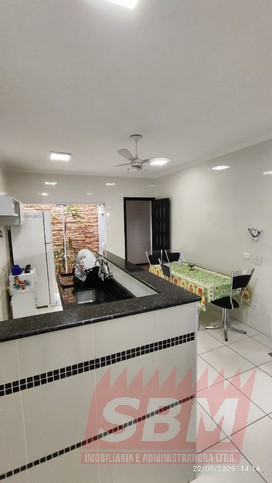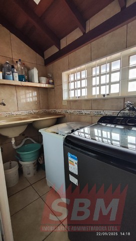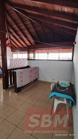 Casa com 02 quartos, sala, cozinha azulejada, jardim de inverno, 02 banheiros azulejados e garagem coberta com portão eletronico + parte superior com área de serviços coberta e azulejada, banheiro azulejado e espaço amplo + edicula com banheiro.