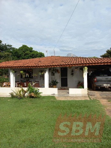 Chácara com 03 quartos, sala, cozinha, 02 banheiros azulejados e garagem descoberta + edícula com cozinha, 02 banheiros e salão.