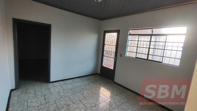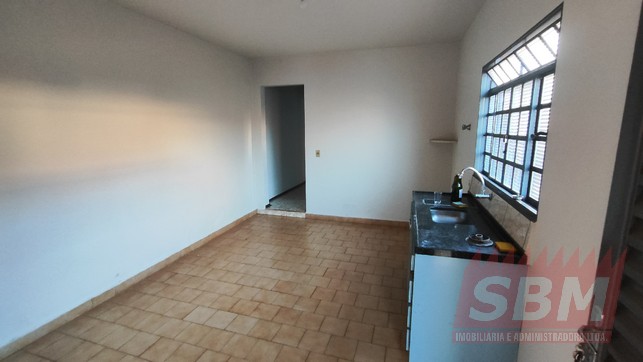 Casa com quarto, sala, despensa, cozinha, banheiro azulejado, área de serviços coberta e garagem coberta.