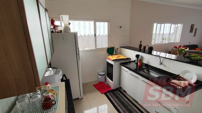Casa com 02 quartos, sendo 01 suíte com banheiro azulejado, sala, cozinha azulejada, banheiro social azulejado, área de serviços azulejada e garagem descoberta.